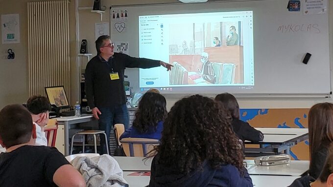 Cette semaine, Mykolas Lukosevicius, dessinateur de presse, sensibilise les élèves de 4eme aux différents dessins de presse et notamment les croquis de procès en lien avec la semaine de la presse et le passeport EduDroit en EMC.
